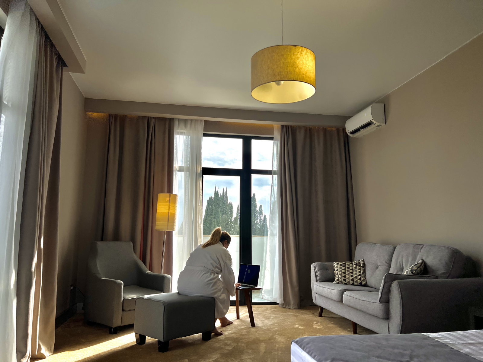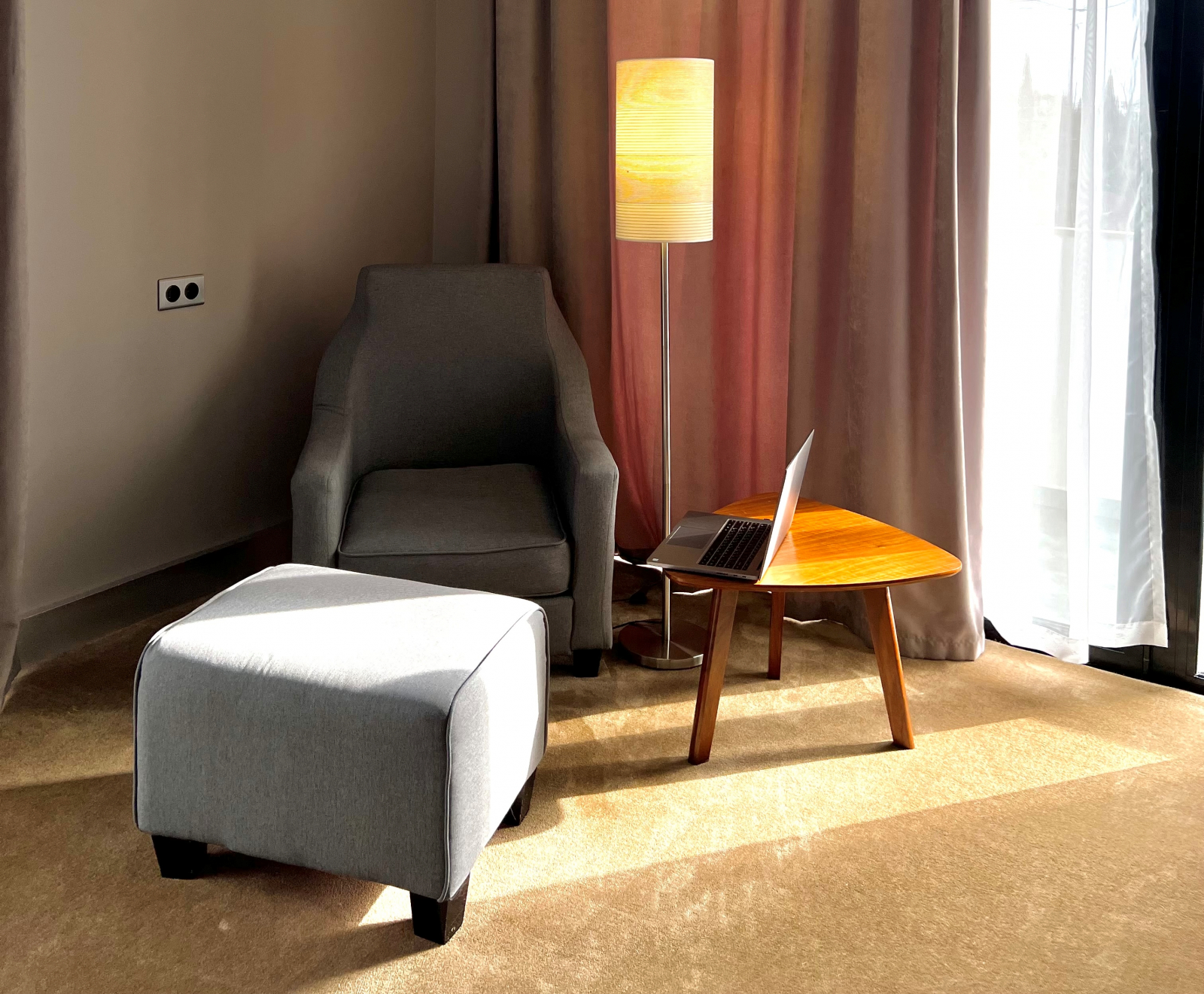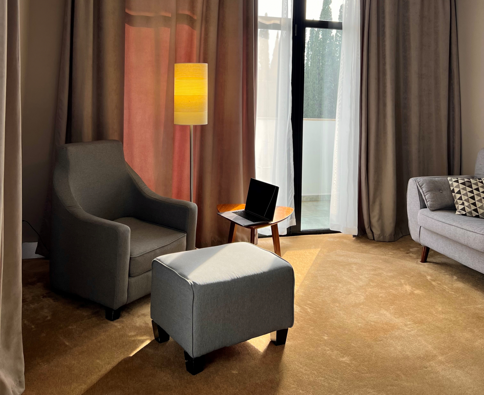Площадь номера - 36 кв.м. 2 осн. места. 1 доп. место. Балкон. Мебель: вешалка, диван, зеркало, кровати односпальные /одна двуспальная кровать, прикроватные тумбочки, столик журнальный, шкаф. Оборудование: кондиционер, сейф, телевизор, холодильник. Санузел: с душем, туалетные принадлежности, фен. Сервис: Wi-Fi бесплатно, смена полотенец, смена постельного белья, уборка номера.